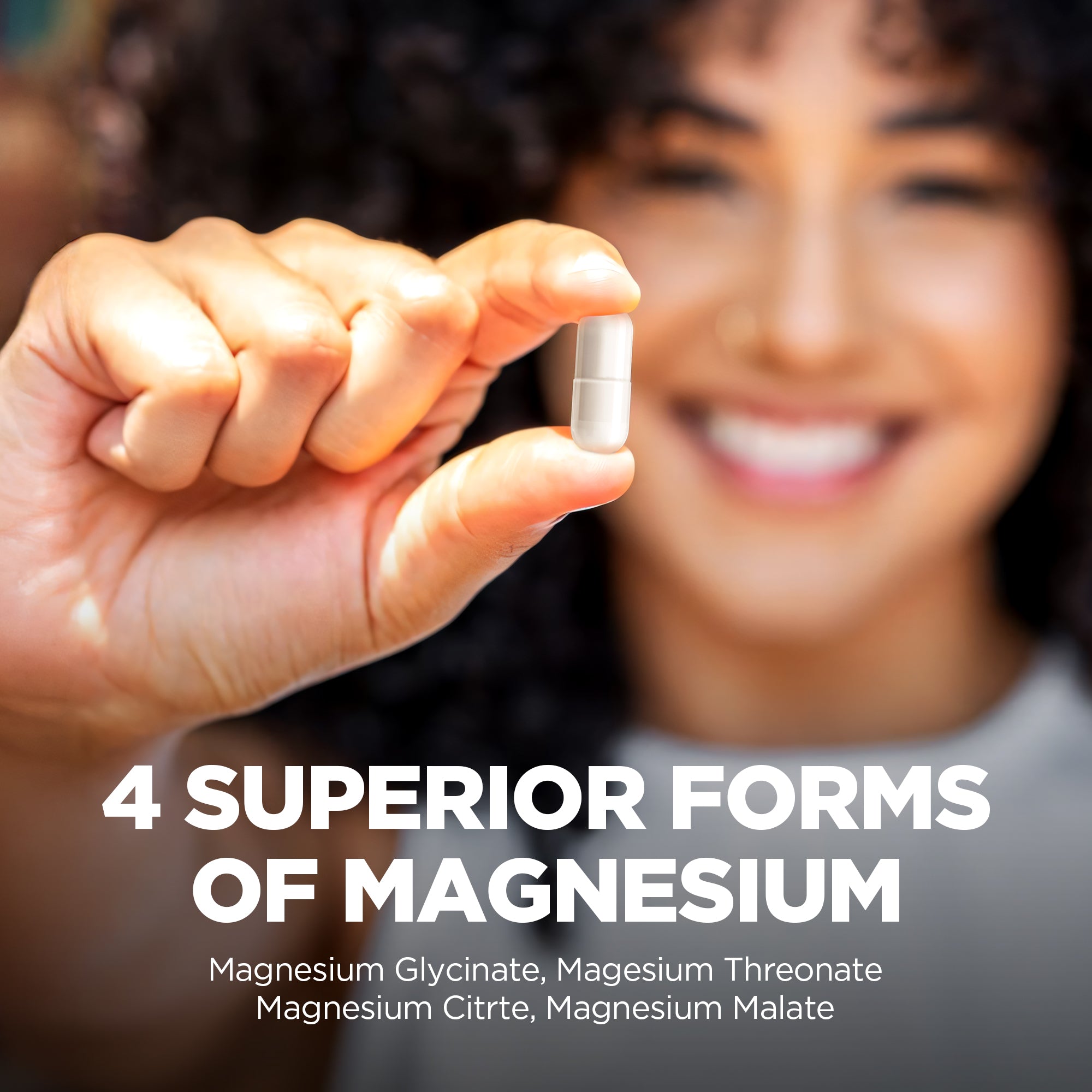 Contains four highly effective magnesium forms: magnesium glycinate, magnesium threonate, magnesium citrate and magnesium malate, which are easily absorbed by the human body.